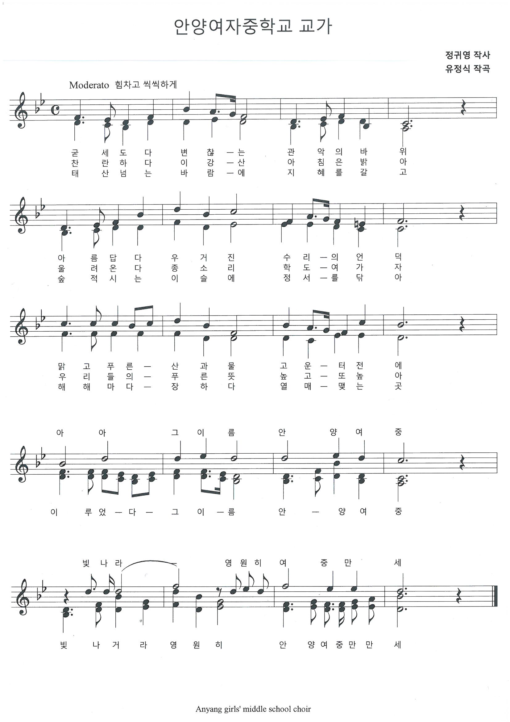 대의(大意) : '안양여중'의 글자 중에서 자음과 모음을 응용한 디자인으로 그 형태는 자연물 중에서 생명력(꿈)을 내포하고 있는 '씨앗'을 상징한다.
